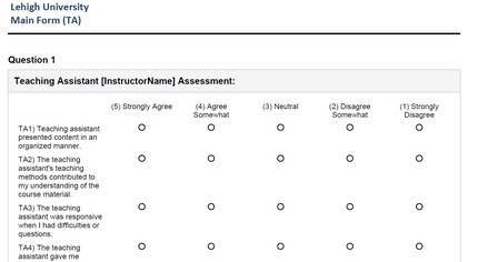 Effective Fall 2018, Teaching Assistants (TAs) are evaluated using a different set of questions.